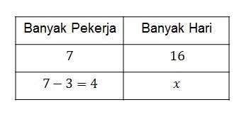 Didapatkan suatu soal suatu pekerjaan dapat diselesaikan selama 36 hari dengan 15 orang pekerja.